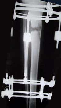 A detta degli esperti questo è un intervento tutt’altro che semplice, con dei rischi come infezioni, trombosi, mancata guarigione dell’osso con necessità di reintervento, lesione dei nervi e dei vasi. Un aggravante poi è dato dalla necessità di operare su entrami gli arti, per non creare differenze significative. Unico caso in cui questo non si presenta è nella cura delle asimmetrie, nelle quali il difetto va corretto su uno solo dei due. Una volta eseguita l’operazione è possibile allungare i segmenti corporei sino a più di un terzo della loro lunghezza iniziale, procedendo alla velocità di circa 1 millimetro al giorno (distrazione lenta e progressiva), dopo aver sezionato l’osso in un punto (osteotomia). Ad esempio, è possibile che un soggetto alto 1.50 metri arrivi fino ad 1.70 metri di altezza: significa un guadagno di ben 20 centimetri. Gli allungamenti si eseguono con varie metodiche. Quelle attualmente più in uso sono quelle che utilizzano fissatori esterni circolari (visibile nella foto sovrastante) per la gamba (tibia-perone) o assiali per il braccio (omero) e per la coscia (femore). A livello femorale è possibile utilizzare in alcuni casi selezionati un chiodo endomidollare (cioè all’interno dell’osso), che permette la graduale distrazione senza necessità di alcun apparato esterno. Il decorso post-operatorio comprende una degenza ospedaliera di circa 5-6 giorni, e controlli clinici e radiografici ad una cadenza di circa 30 giorni. Il paziente può caricare da subito (per quanto tollerato), con i fissatori esterni, mentre deve osservare un carico parziale con 2 stampelle nel caso si sia usato il chiodo endomidollare. La tecnica con questo chiodo, che permette allungamenti del solo femore in un range che varia tra i 6 e i 10 centimetri, ha mostrato brillanti risultati soprattutto in relazione al fatto che tutto il dispositivo è all’interno dell’osso e i disagi legati all’allungamento vengono assai limitati, permettendo così un ritorno rapido alla vita di tutti i giorni. In generale, il tempo di guarigione è di circa 35 giorni per centimetro di allungamento. Nei bambini questo tempo è assai ridotto, talvolta dimezzato in soggetti acondroplasici. L’allungamento attraverso l’uso di fissatori esterni richiede un tempo massimo di rimozione non superiore al periodo di guarigione, mentre questo che si allunga enormemente (fino a 2 anni) con la tecnica del chiodo endomidollare.