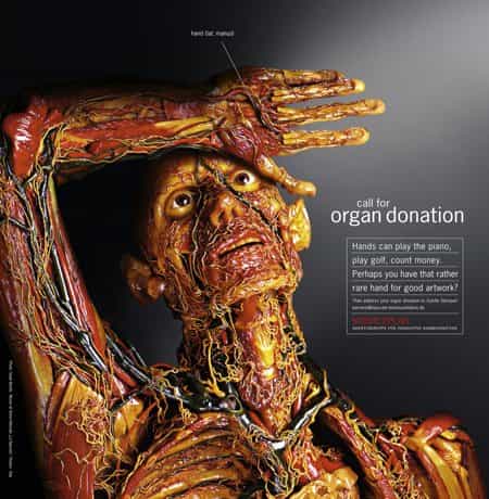 La Serviceplan, famosa agenzia pubblicitaria tedesca, ha realizzato quattro manifesti dal doppio significato per reclutare giovani pronti a donare occhi, cervello, mani e cuore all’azienda. Dal mio punto di vista potrebbe essere perfetta per essere sfruttata proprio per sensibilizzare le persone a donare gli organi nel vero senso della parola. Su daivaloreallavita.it ho trovato questo poche righe molto significative per tutti: