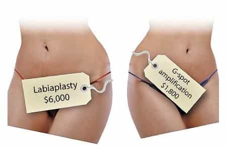 - labiaplasty o labbroplastica, consiste in una riduzione delle labbra in donne che hanno problemi ad indossare costumi o vestiti attillati. Questo intervento chirurgico costa circa 6000$, quasi 4500€.