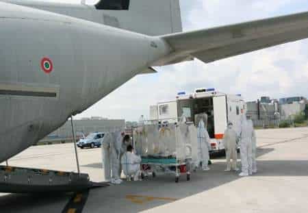 E’ successo il 9 ottobre, un uomo senegalese di ritorno dall’Africa è stato trasportato dall’ospedale di Torino allo Spallanzani di Roma. La scena poteva sembrare quella di un film, uomini con delle tute bianche e un aereo militare che trasporta un uomo affetto da non si sa quale patologia che minaccia la salute pubblica, eppure era tutto vero! L’uomo presentava febbre alta e vomito, una serie di esami hanno portato alla sconvolgente diagnosi: febbre emorragica, sono state adottate immediatamente tutte le misure di prevenzione e sicurezza. Il paziente è stato trasportato a bordo di un C-130J della 46a Brigata Aerea, ad accompagnarlo un’équipe di medici e paramedici. Sorprendenti le misure di sicurezza adottate per evitare il contagio. E’ stata untilizzata L’ATI: una barella chiusa impiegata per isolare i pazienti con patologie particolarmente contagiose e pericolose. L’Aircraft Transit Isolators, questo è il nome del dispositivo, è costituito da filtri speciali, da un telaio in alluminio, da un rivestimento in PVC e da un sistema di alimentazione. Una volta giunto nella Capitale il paziente è stato ricoverato in una stanza di isolamento, sono in corso le dovute analisi e numerosi accertamenti e sembra sia stato scongiurato il rischio di contagio.